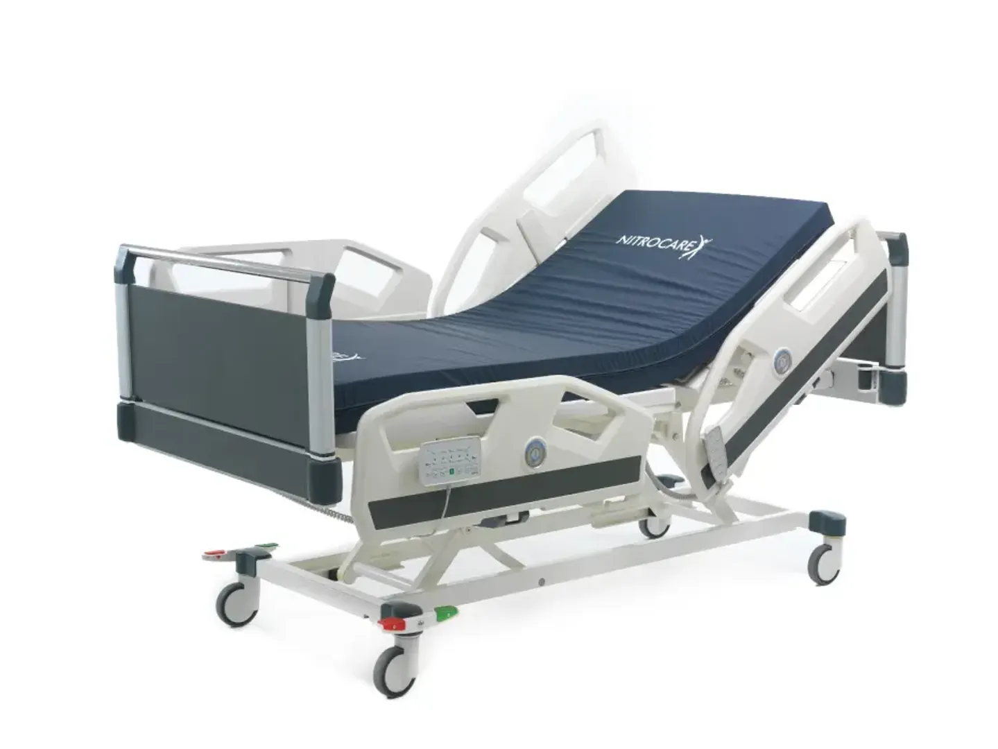 NITRO HB 8140 C – это современная медицинская кровать для отделений интенсивной терапии. Оснащенное 4 мощными электромоторами, позволяет удобно регулировать высоту, наклон спинки и секции для ног, а также поддерживает функции Тренделенбурга и обратного Тренделенбурга.