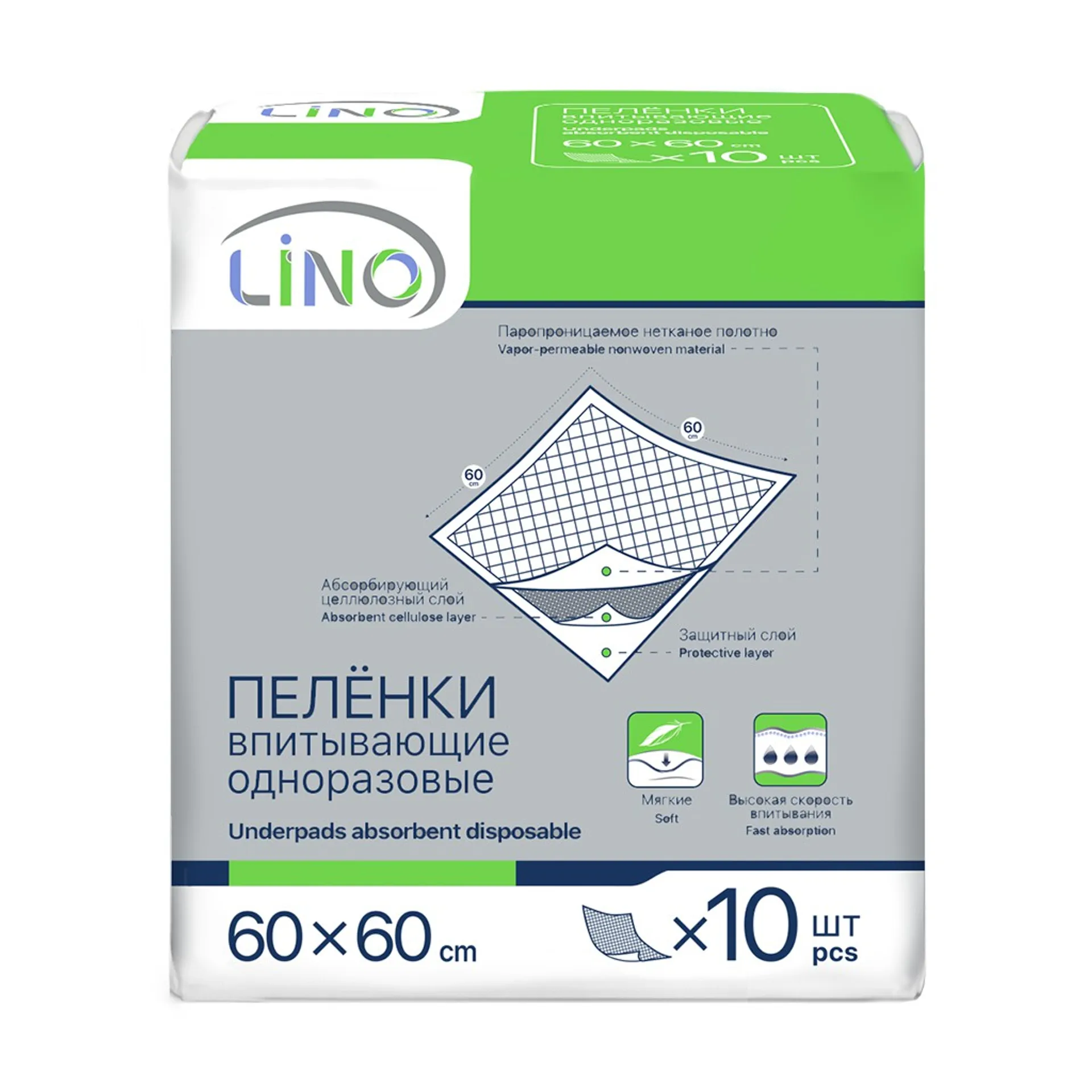 Пеленки впитывающие LINO используются для защиты поверхности от мокрых загрязнений при уходе за людьми, в том числе детьми.