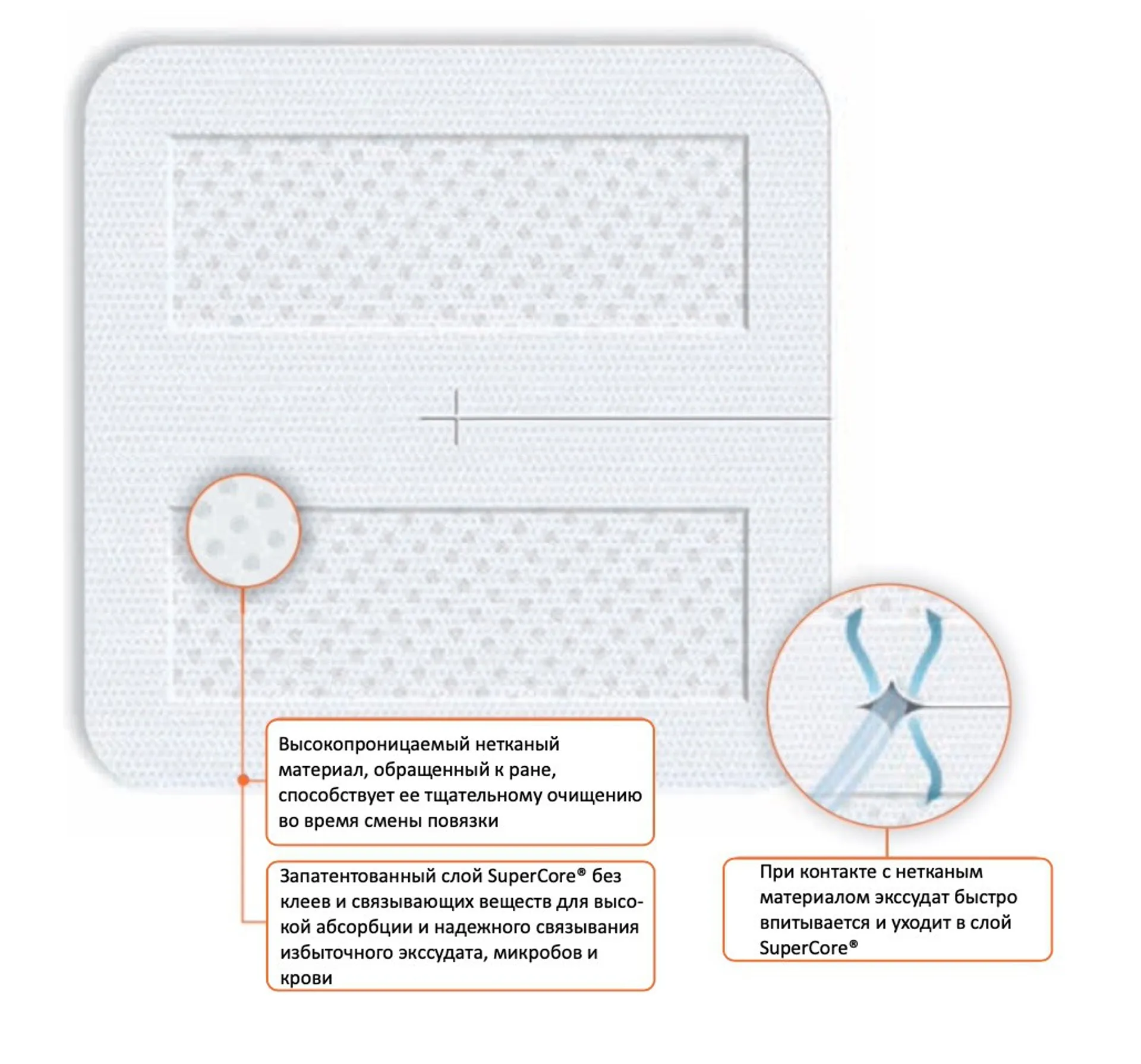 • Надежное связывание экссудата в слое SuperCore