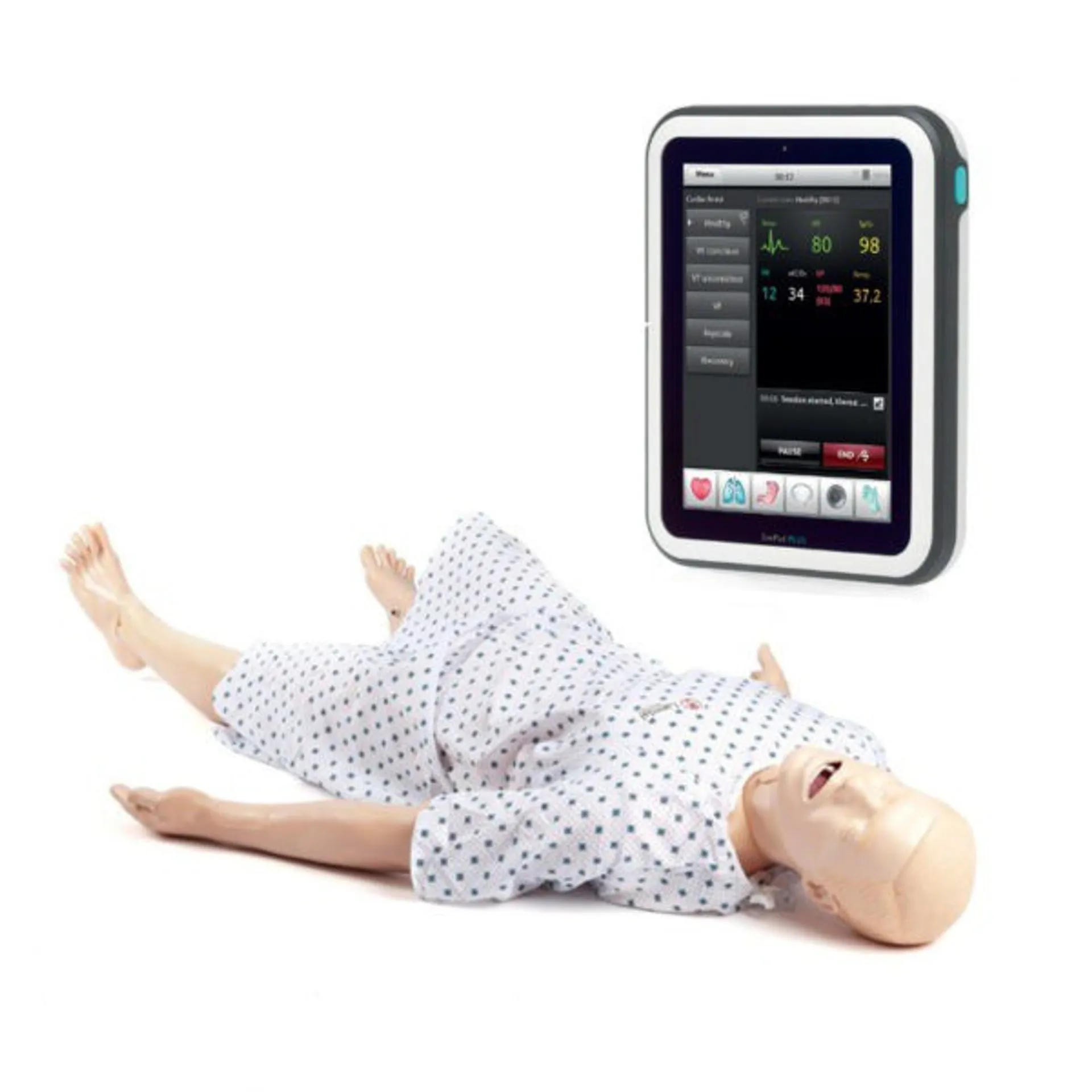 7. Манекен имеет возможность подключения управляющего устройства (планшет инструктора SimPad PLUS, входит в комплект), а также имитатора.