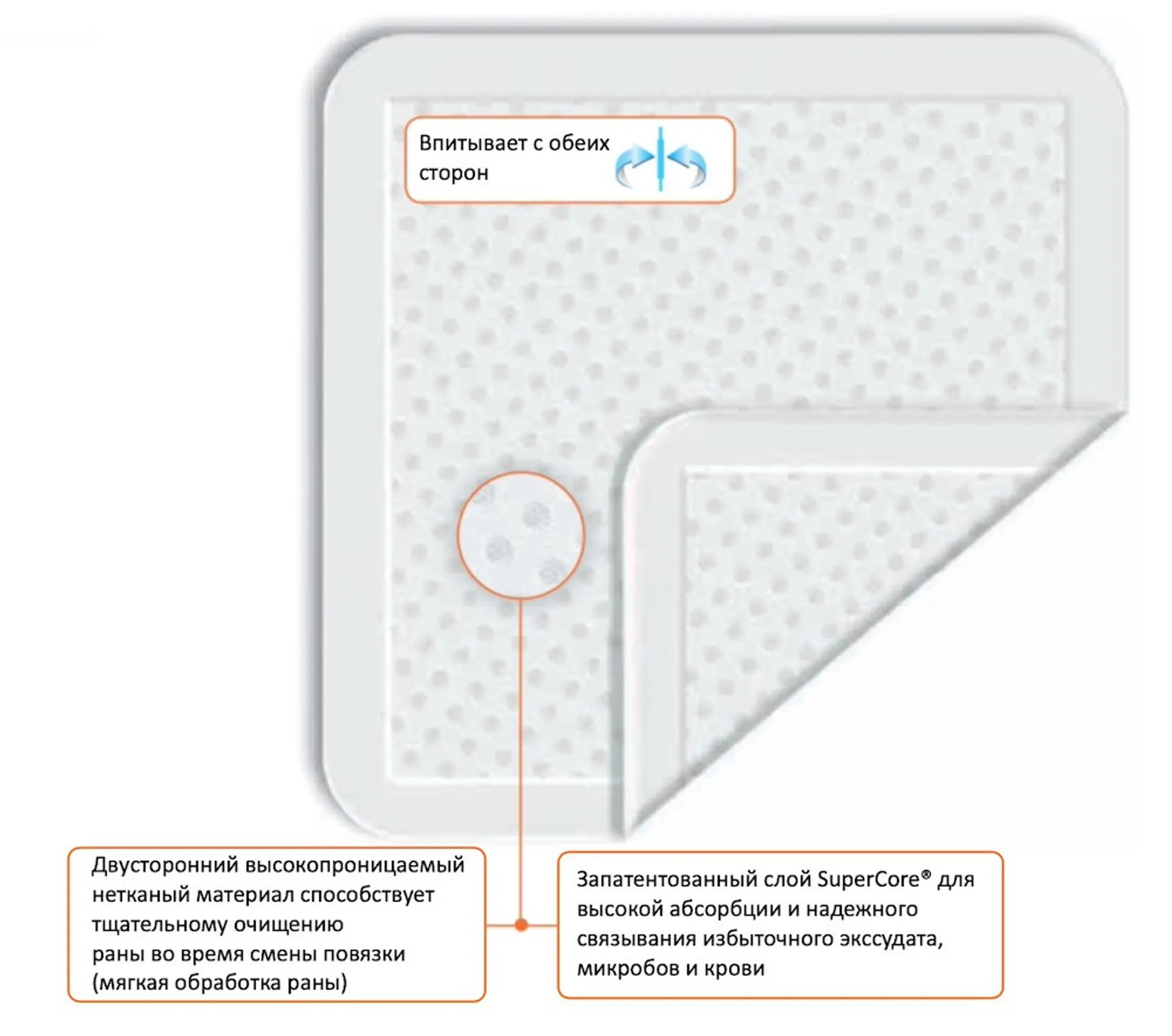 • Надежное связывание избыточного экссудата в слое SuperCore.