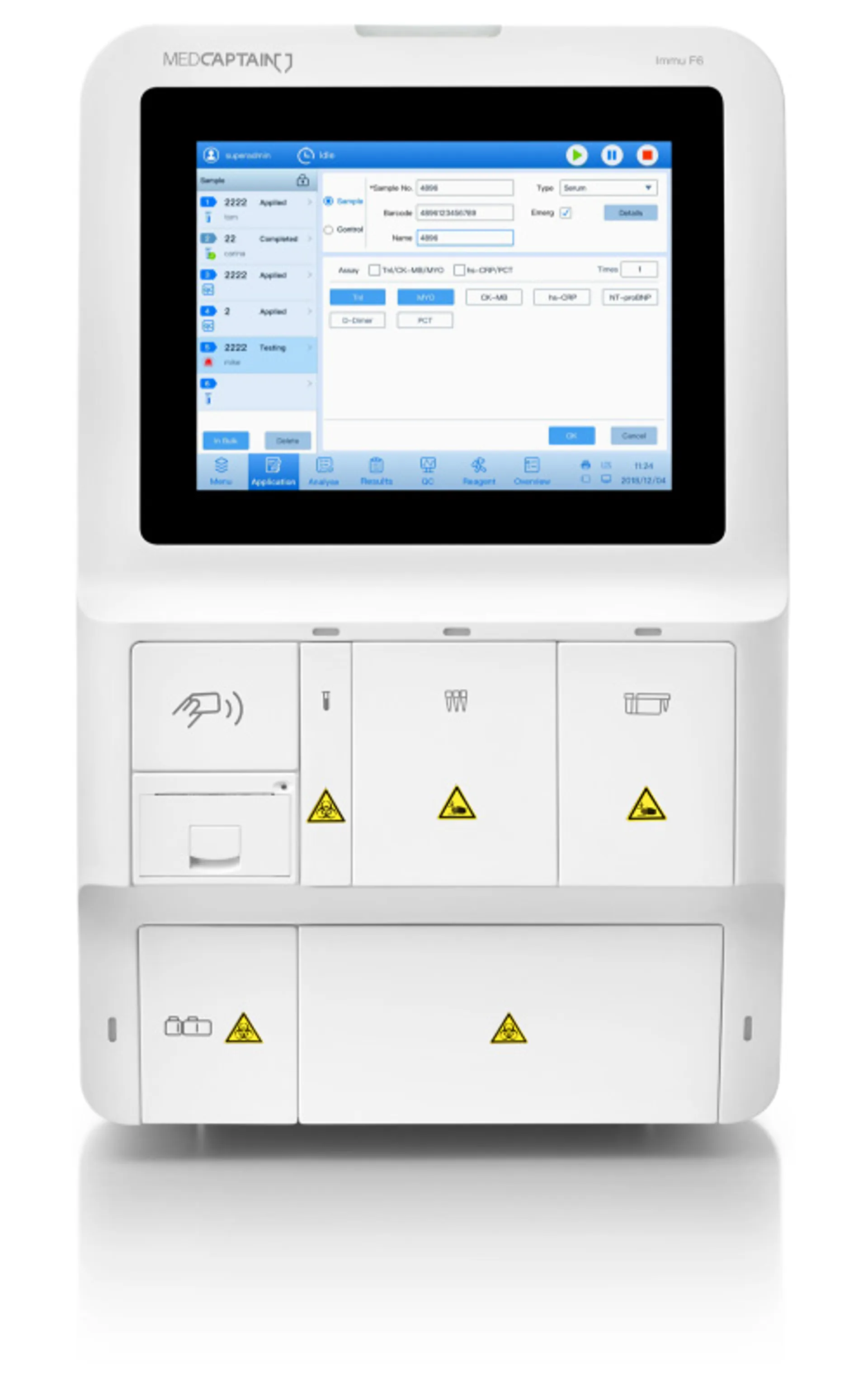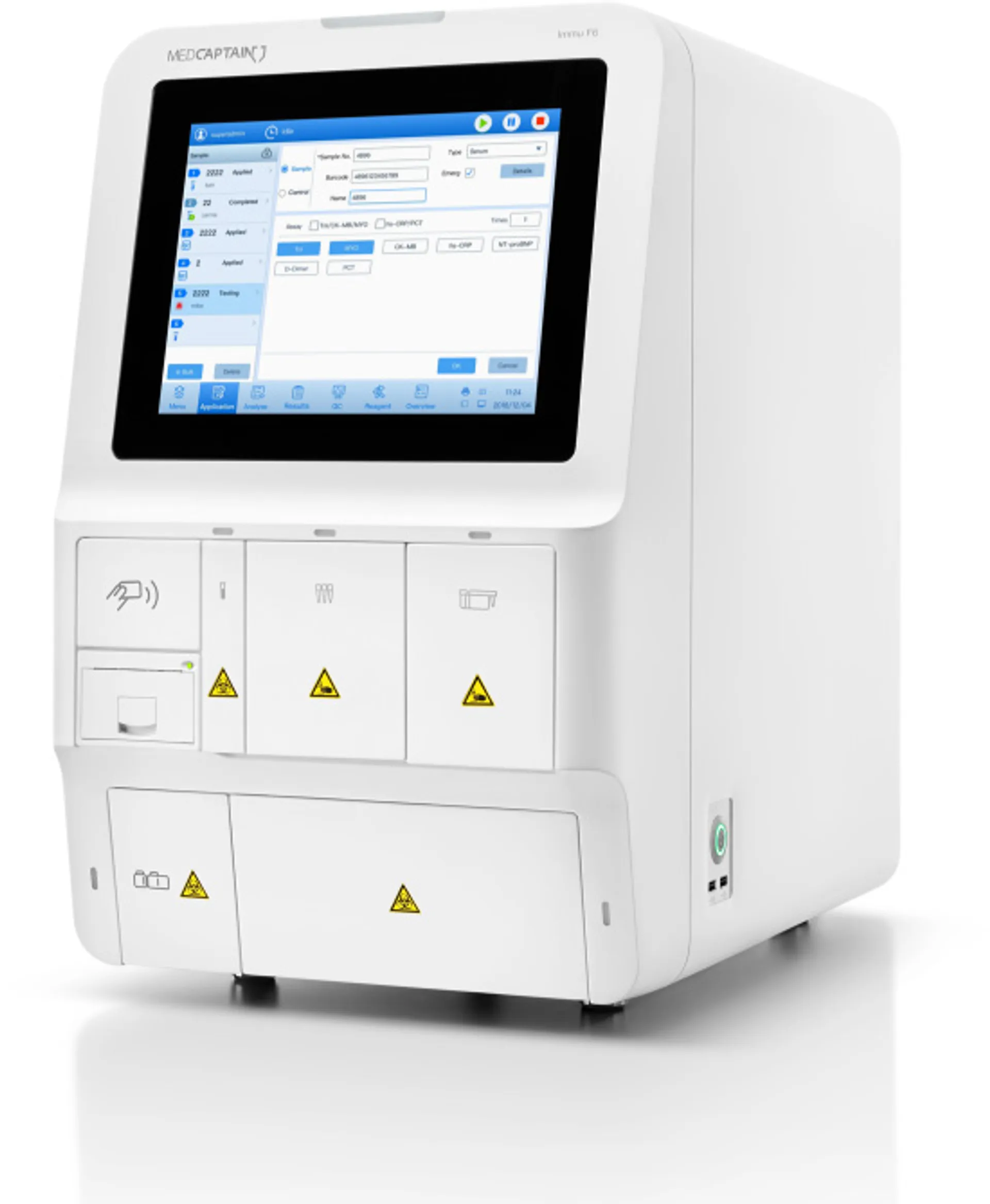 Immu F6 – автоматический хемилюминесцентный иммуноанализатор. Использует прямую хемилюминесценцию на основе эфира акридиния, используется с соответствующими детектируемыми реагентами, подходит для качественного или количественного анализа аналитов в образцах сыворотки, плазмы или цельной крови человека.